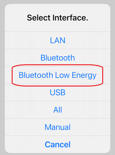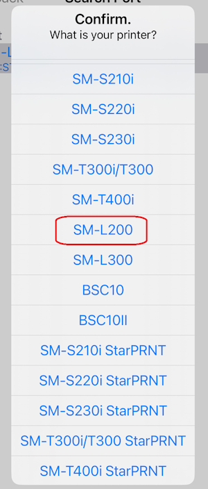 SM-L200以外のプリンターの場合、該当する接続方法「LAN」「Bluetooth」「USB」を選択してください。