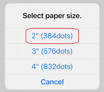 58mmロール紙をご利用の場合は「2″(384dots)」