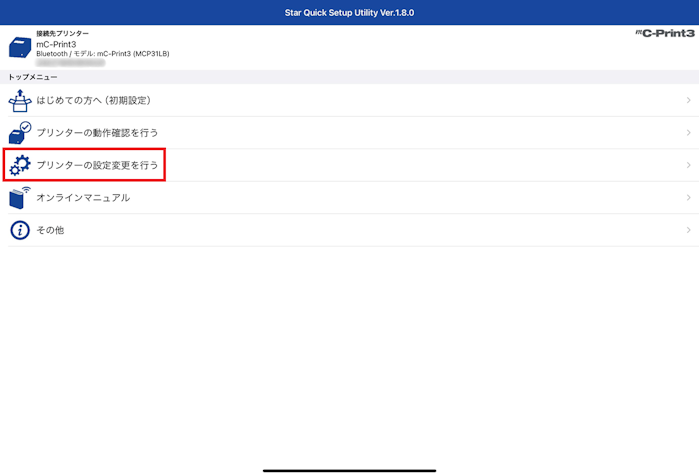 Star Quick Setup Utilityアプリを利用してプリンターとタブレット端末を接続します。